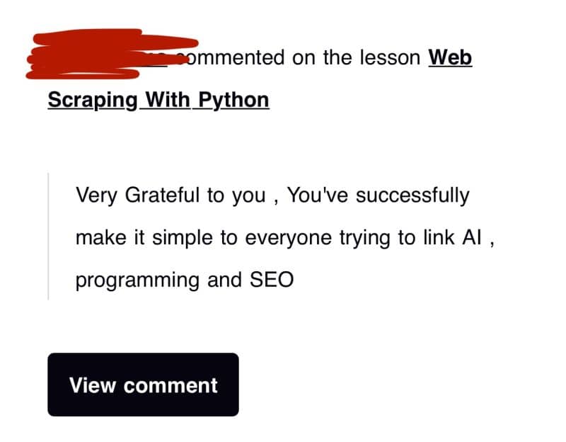 - "Very Grateful to you , You've successfully make it simple to everyone trying to link AI , programming and SEO"