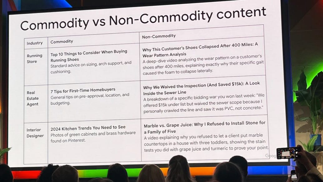 Commodity content is basic, simple, and very generic. People may not relate too, you are talking AT people. Non-commodity content is talking about a problem, sharing personal experiences and real-life scenarios.
