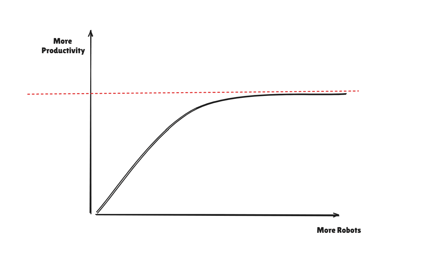 At some point, the productivity curve plateaued. Adding more robots stopped producing dramatic results.