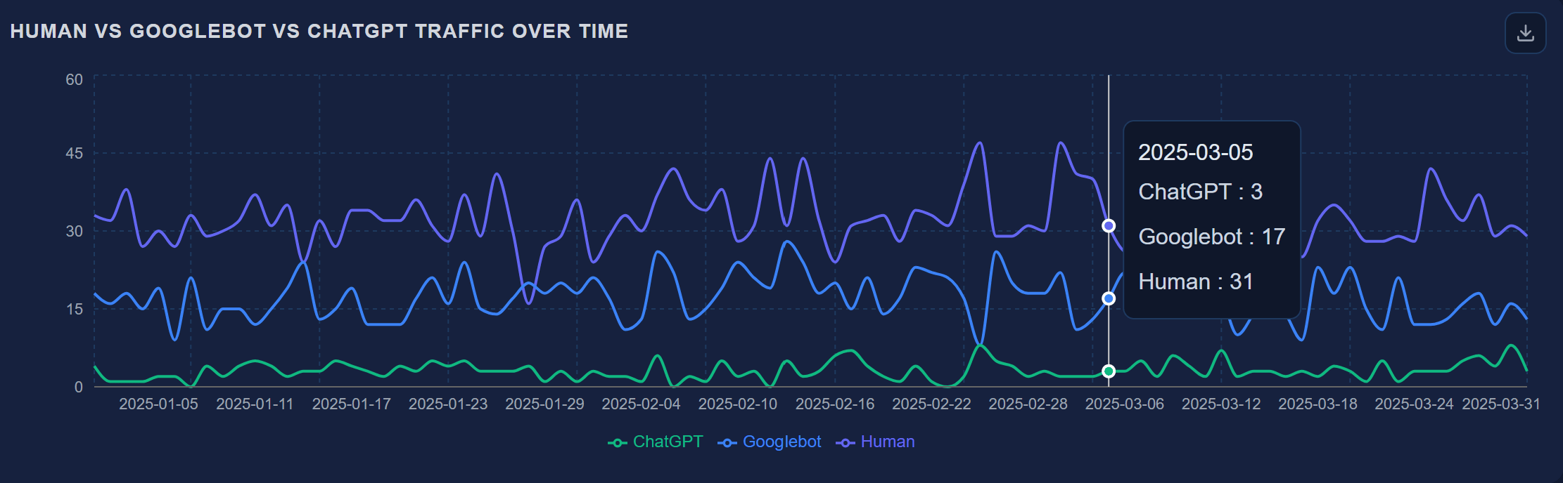 Server log files for SEO record every request made to a website’s server, including pages crawled, response codes, and bot activity. You can use server log files to analyze how search engine and AI bots crawlers access your site, identify crawl errors, and optimize crawl budget and indexing efficiency.