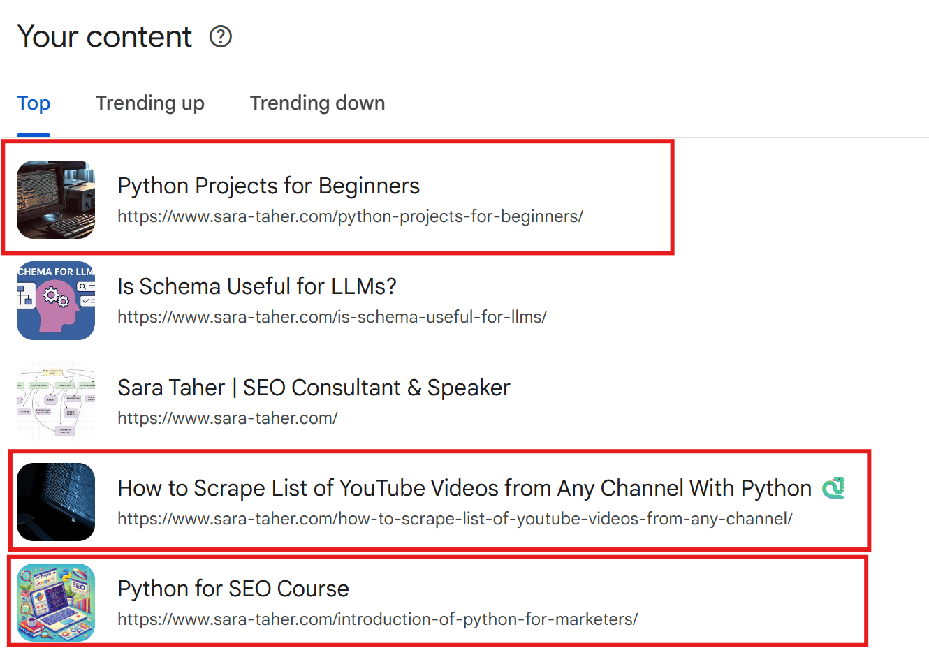For example, if you look at my website, I don’t actually have much content about Python. I’ve published a few pieces, yes—but the majority of my content is focused on SEO and AI.